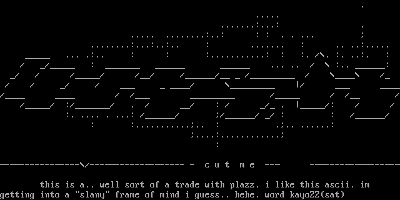 this is a.. well sort of a trade with plazz. i like this ascii. im
