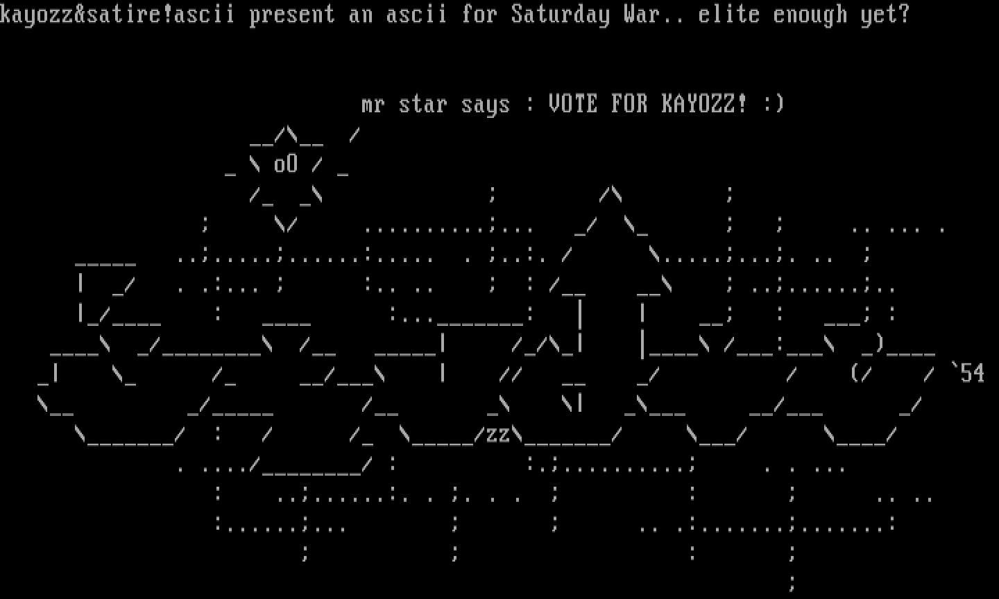 kayozzsatire!ascii present an ascii for Saturday War.. elite enough yet?