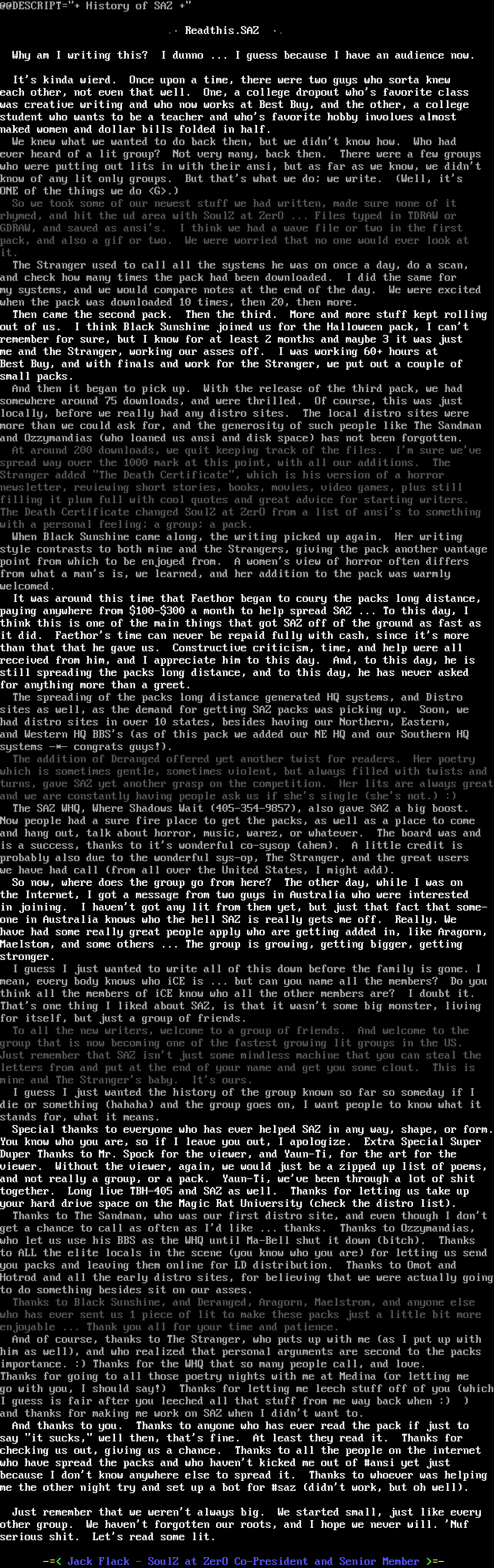 and Ozzymandias who loaned us ansi and disk space has not been forgotten.