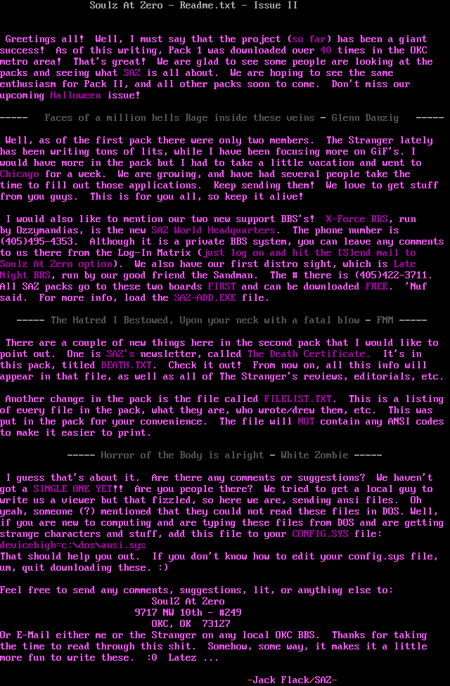 Or E-Mail either me or the Stranger on any local OKC BBS. Thanks for taking