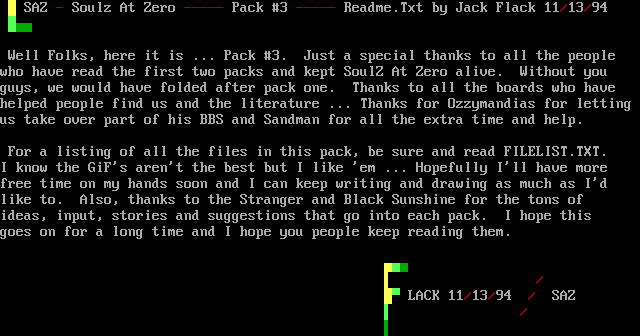 SAZ - Soulz At Zero ----- Pack 3 ----- Readme.Txt by Jack Flack 11/13/94