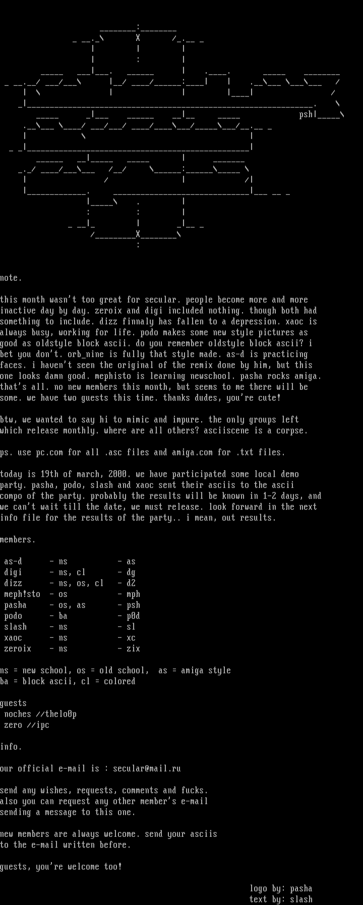 party. pasha, podo, slash and xaoc sent their asciis to the ascii