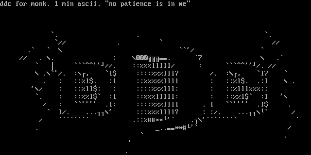 ddc for monk. 1 min ascii. no patience is in me