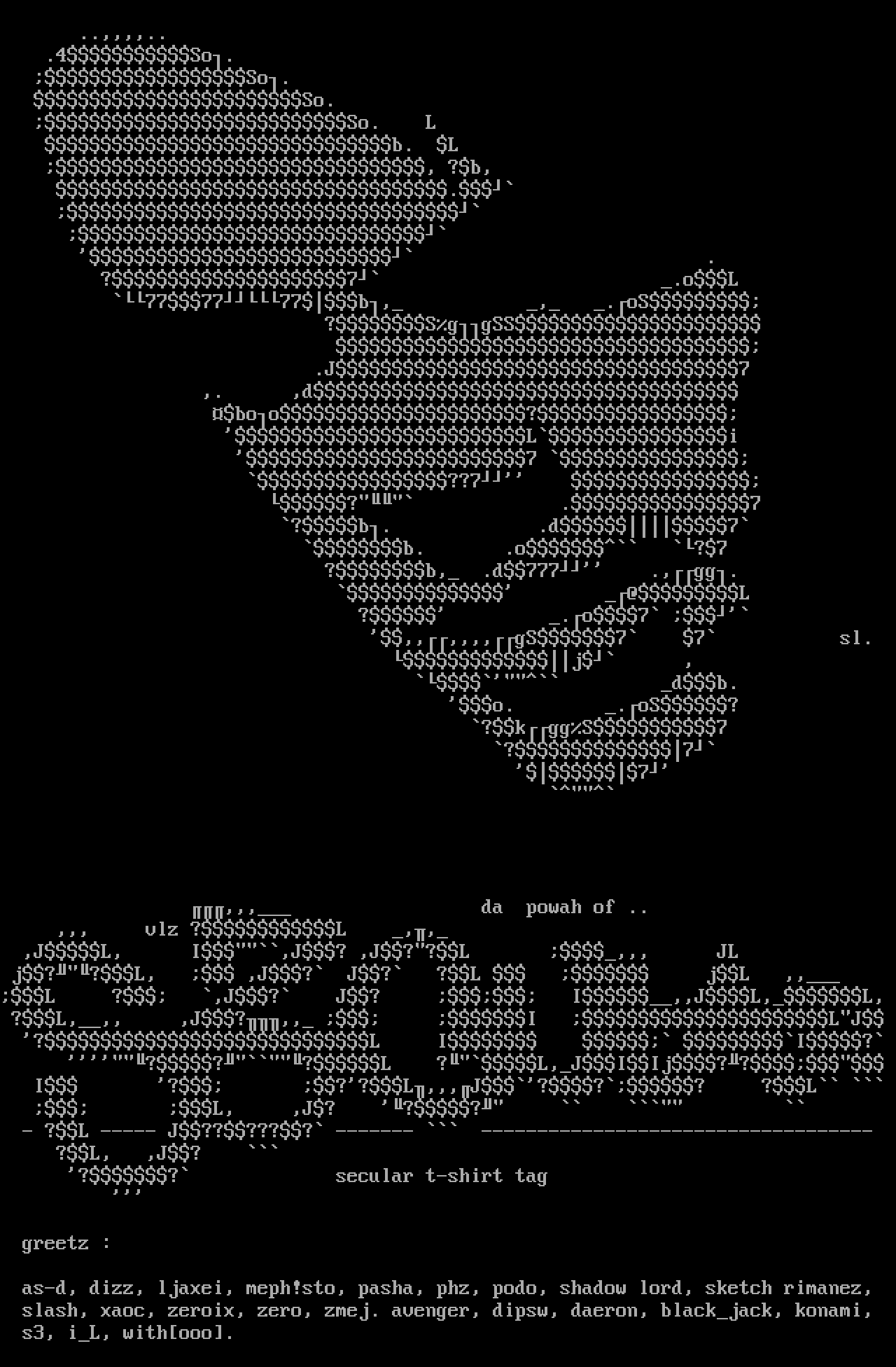 slash, xaoc, zeroix, zero, zmej. avenger, dipsw, daeron, blackjack, konami,