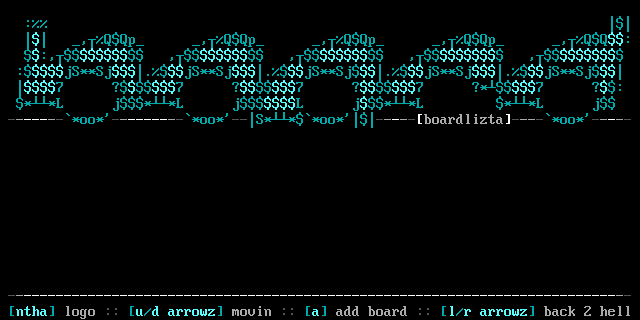 ntha logo :: u/d arrowz movin :: a add board :: l/r arrowz back 2 hell