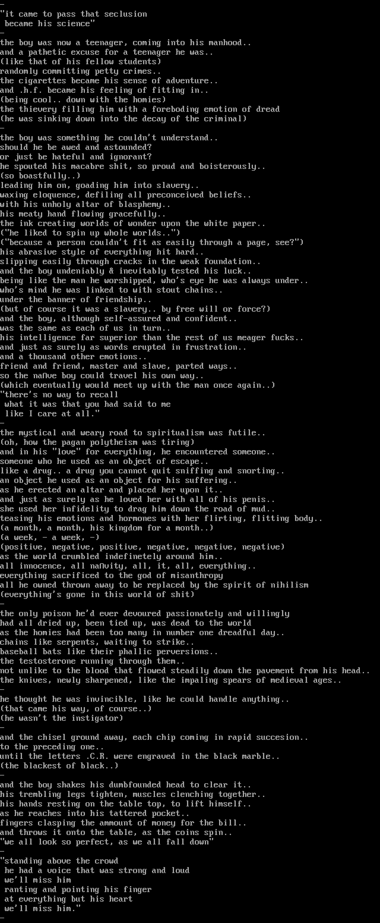 everything sacrificed to the god of misanthropy
