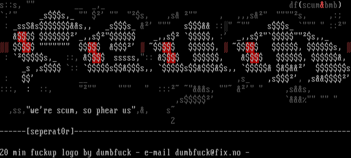 20 min fuckup logo by dumbfuck - e-mail dumbfuck@fix.no -