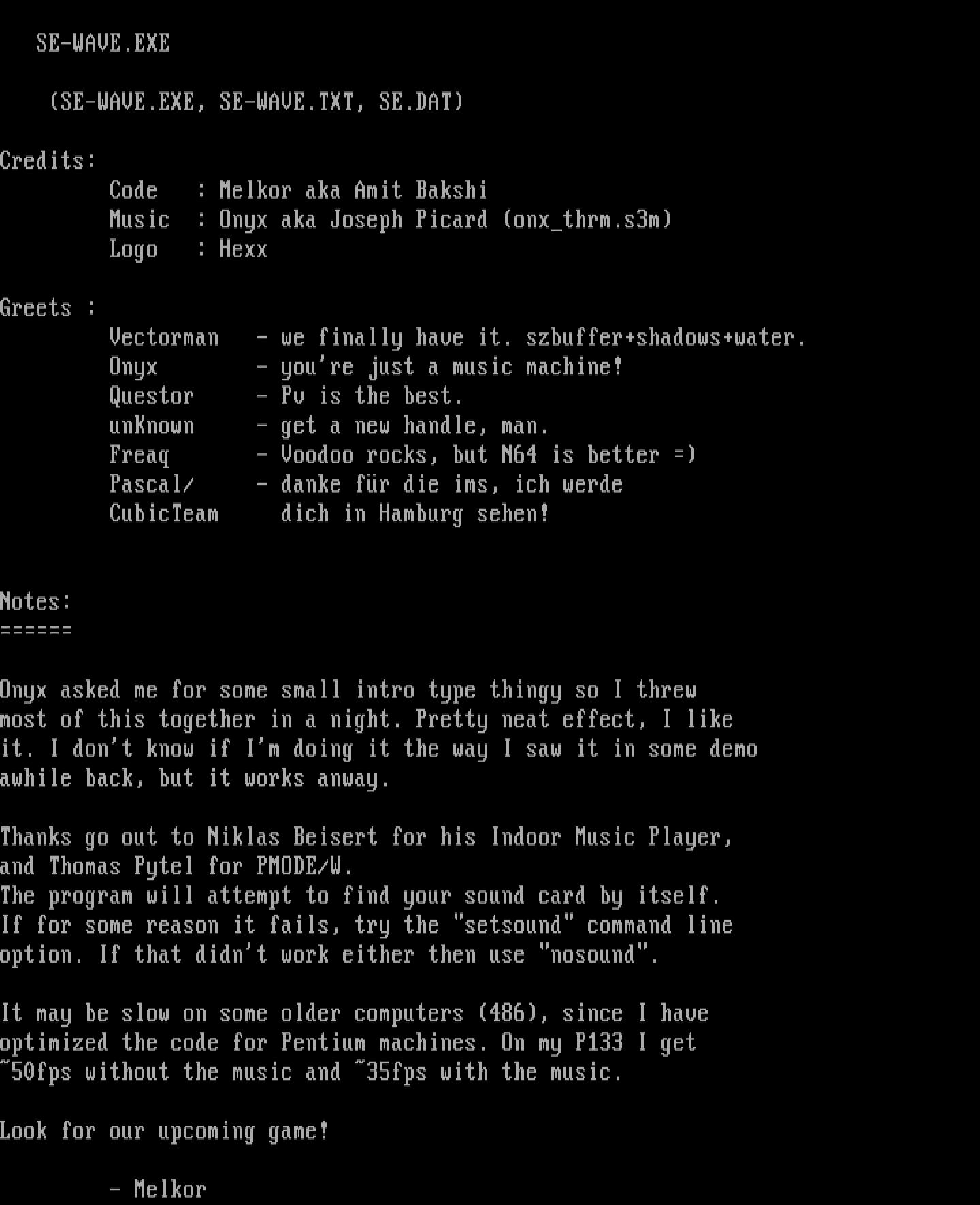 SE-WAVE.EXE, SE-WAVE.TXT, SE.DAT
