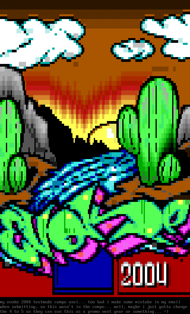 my evoke 2004 textmode compo ansi... too bad i made some mistake in my email