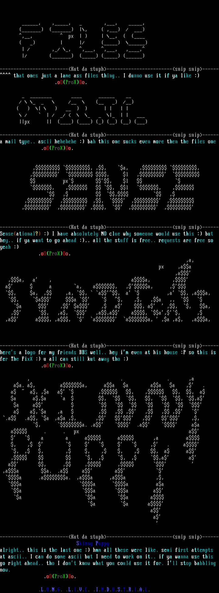 -------------------------Kut da stuph------------------------snip snip------heres a logo fer my friends BBS well.. hey im even at his house :P so this is