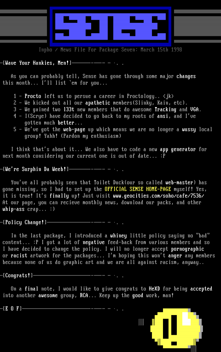 gone missing, so I had to set up the OFFICIAL SENSE HOME-PAGE myself! Yes,
