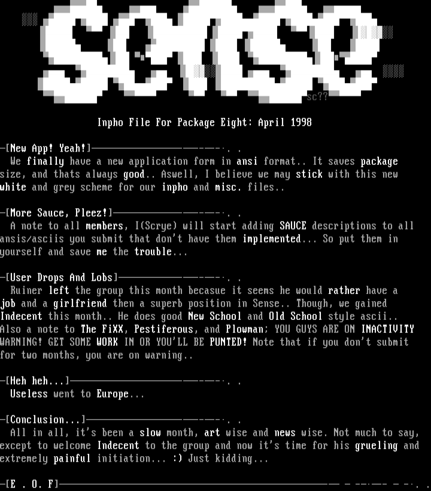 A note to all members, IScrye will start adding SAUCE descriptions to all