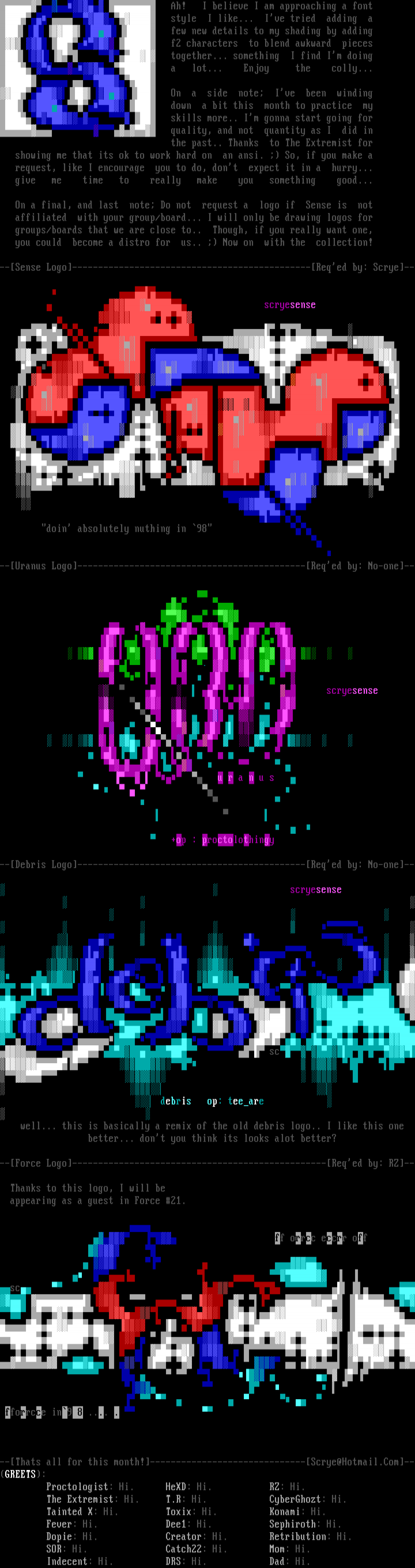 --Thats all for this month!------------------------------Scrye@Hotmail.Com--GREETS: