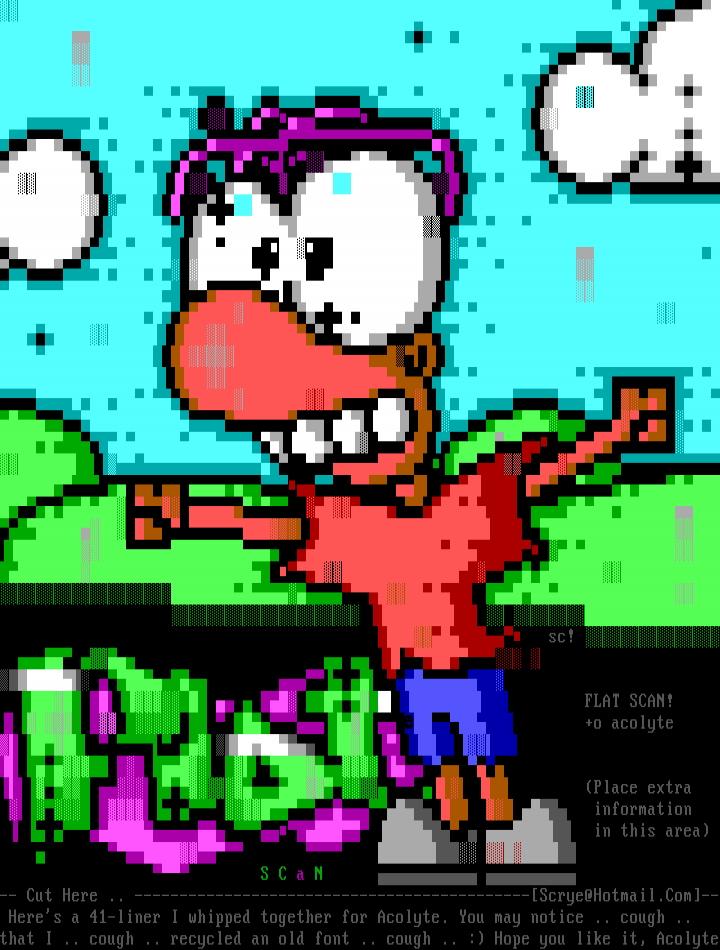 -- Cut Here .. --------------------------------------------Scrye@Hotmail.Com-- Heres a 41-liner I whipped together for Acolyte. You may notice .. cough ..