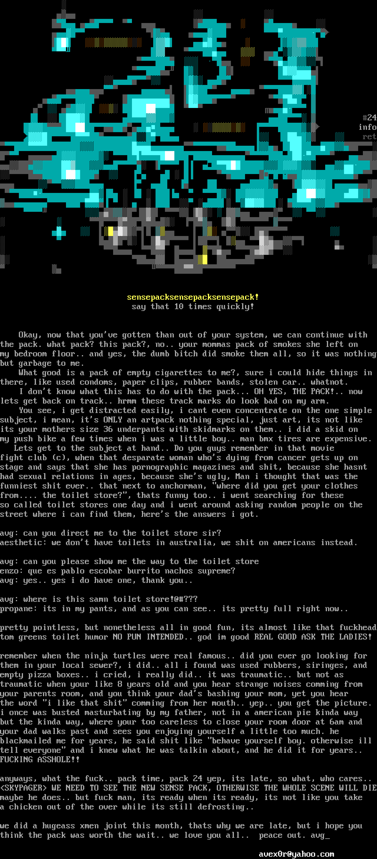 SKYPAGER WE NEED TO SEE THE NEW SENSE PACK, OTHERWISE THE WHOLE SCENE WILL DIEmaybe he does.. but fuck man, its ready when its ready, its not like you take