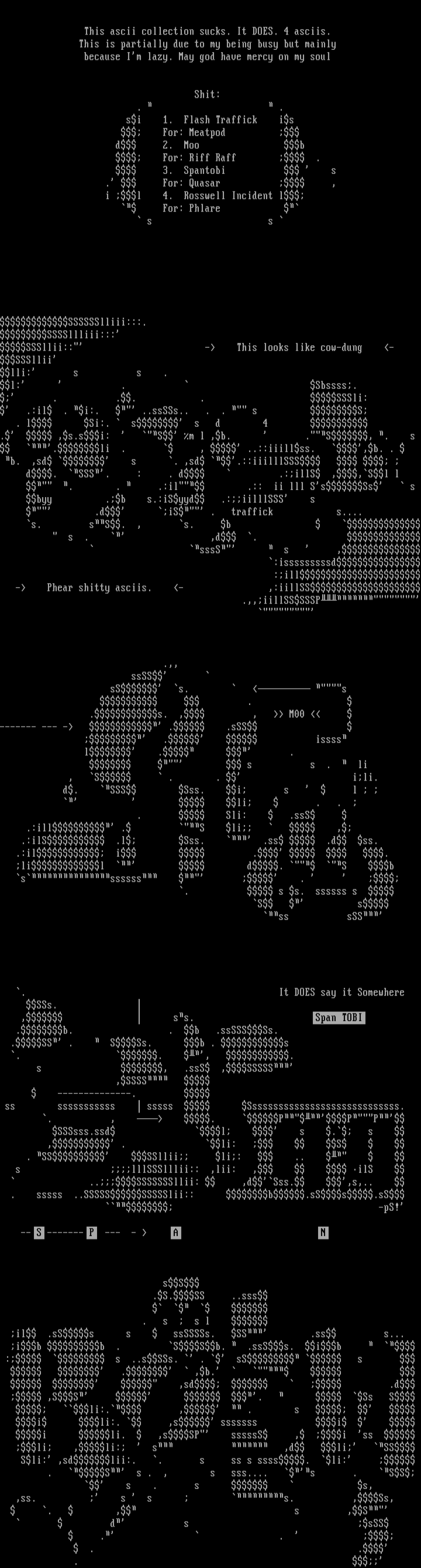 s. sS. , s. b s . ,d . sssS s , :isssssssssd :ill - Phear shitty asciis. - ,:iillSS .,,iillSSSSSP