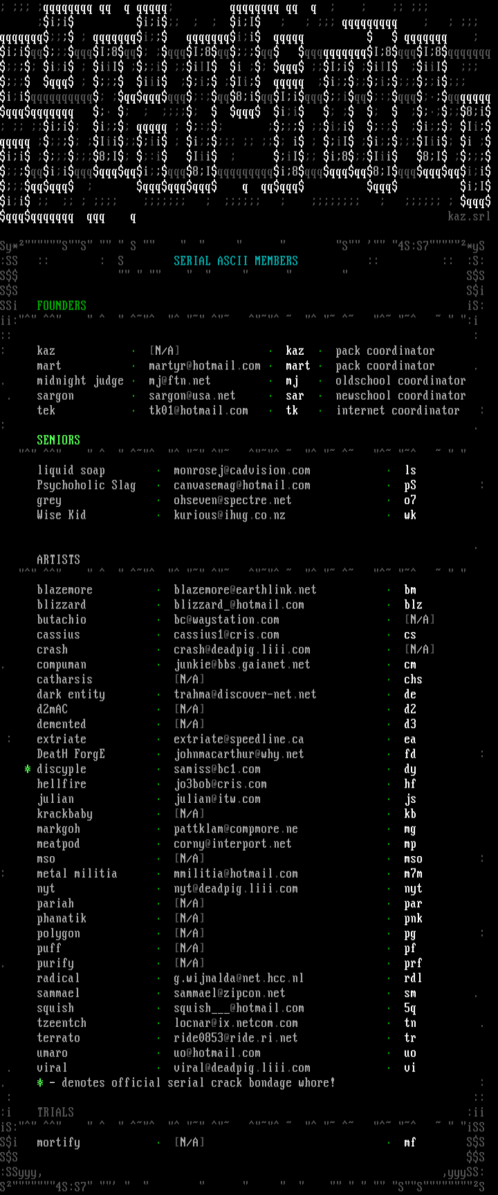 :SS :: : S SERIAL ASCII MEMBERS :: :: :S: