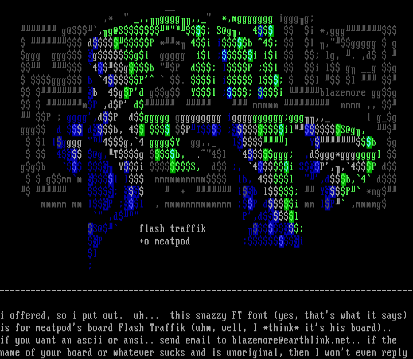 if you want an ascii or ansi.. send email to blazemore@earthlink.net.. if the