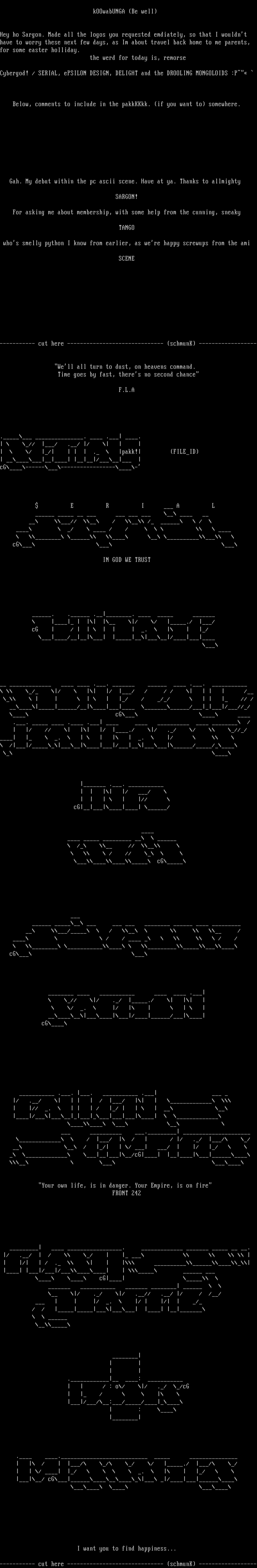 Gah. My debut within the pc ascii scene. Have at ya. Thanks to allmighty