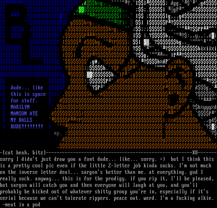 ?P,dbg,.?.ll dgg,,gd ,,, ,g,. .l gP ,d , ?i::. l lg,,,gd ?P gbg,. ?Pi: l lP? b..l,bg,. l .,.?PP ,P?. l i.?b,.?:,,y,,:,di: P l dbg,?P l :.?bg,,: l dbgdl ?.,.?biiii l il P? ?g,- P? ,g@,?P ,b,?bdP,db,?b ?lb.?P ,gP,b,,..Pb :g lb.lP,g , gl l lP,ddbb ? ,.? dude... like P d.?P.dP.dP dg,l this is space lll,b,./dP ?: for stuff. :: d ,P :. . MARILYN ,SSSbgdP,d ?byyyd MANSON ATE dlP,d.P MY BALLS P?Pldb .,gd l DUDE!!!!!!!! l :,? : : mp. .b.? .. ...... .. .. . .dyb. ,-cut heah, bitz------------------------------------------------------X8-------sorry I didnt just draw you a font dude... like... sorry. but I think this