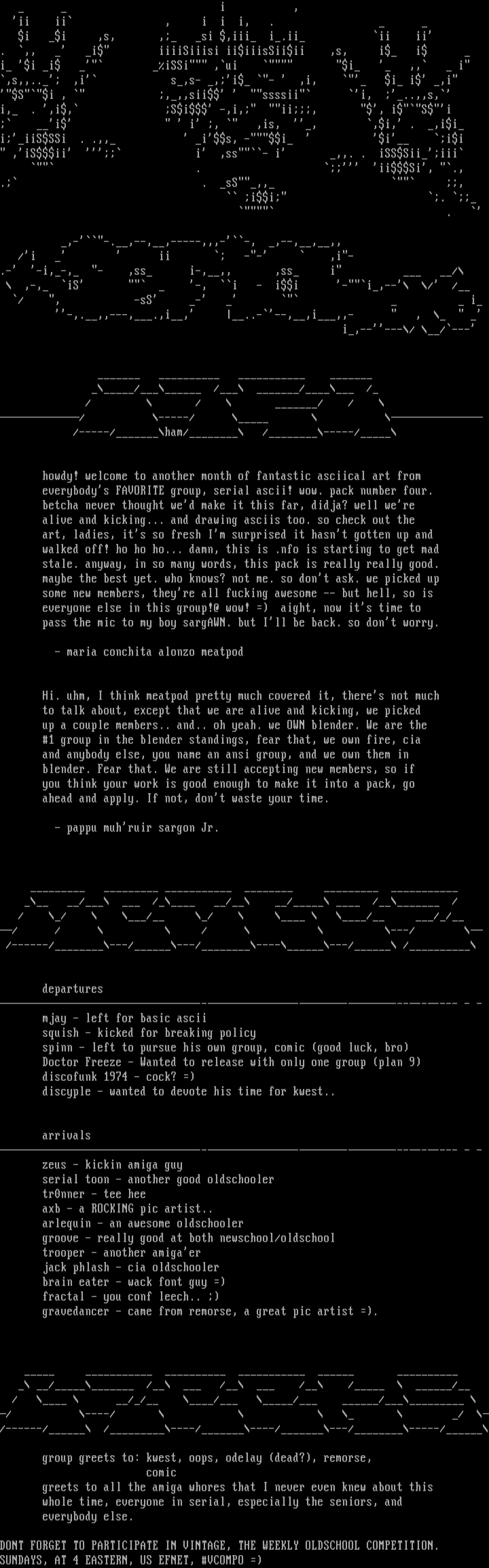 everybodys FAVORITE group, serial ascii! wow. pack number four.