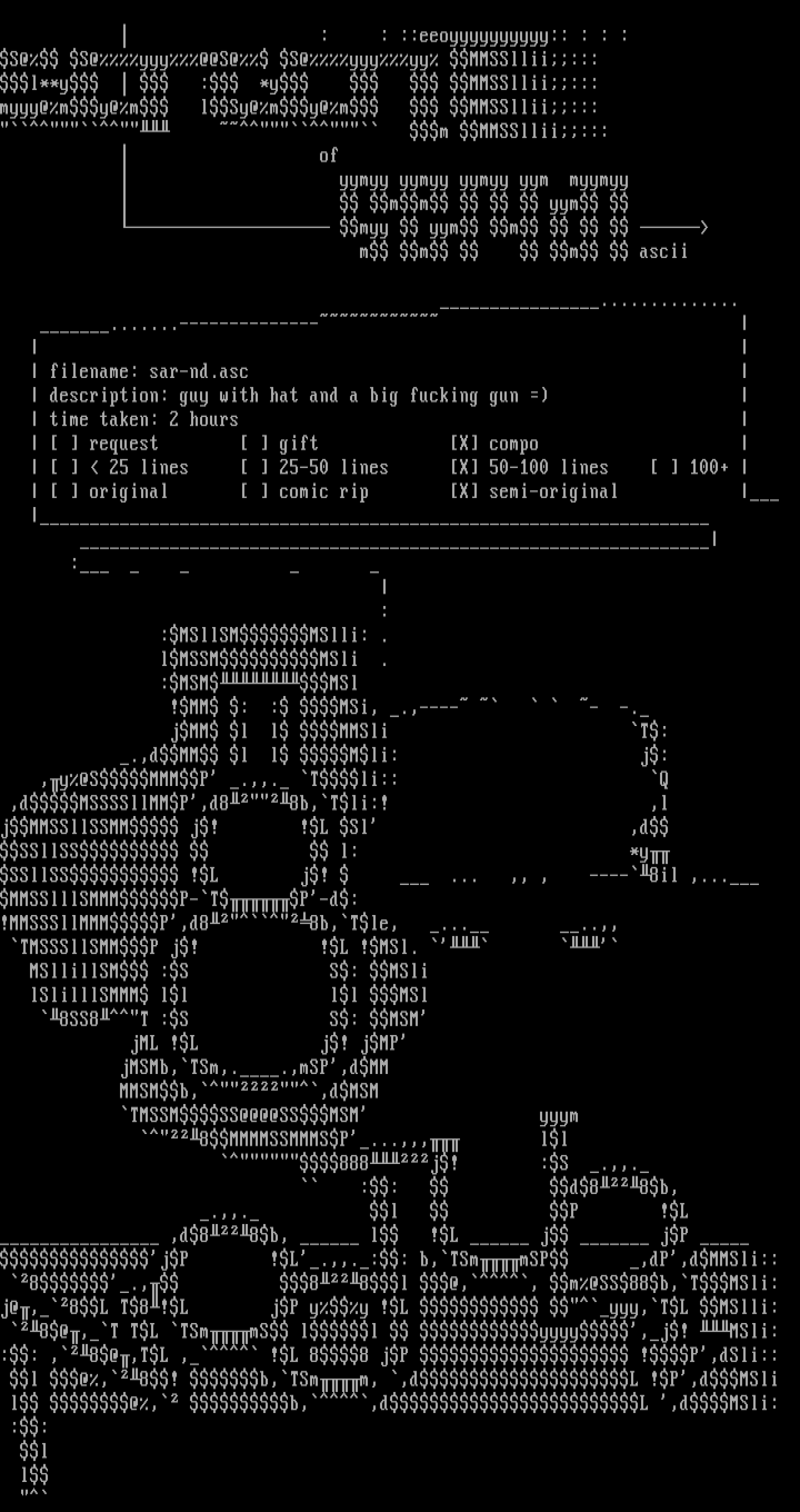 description: guy with hat and a big fucking gun