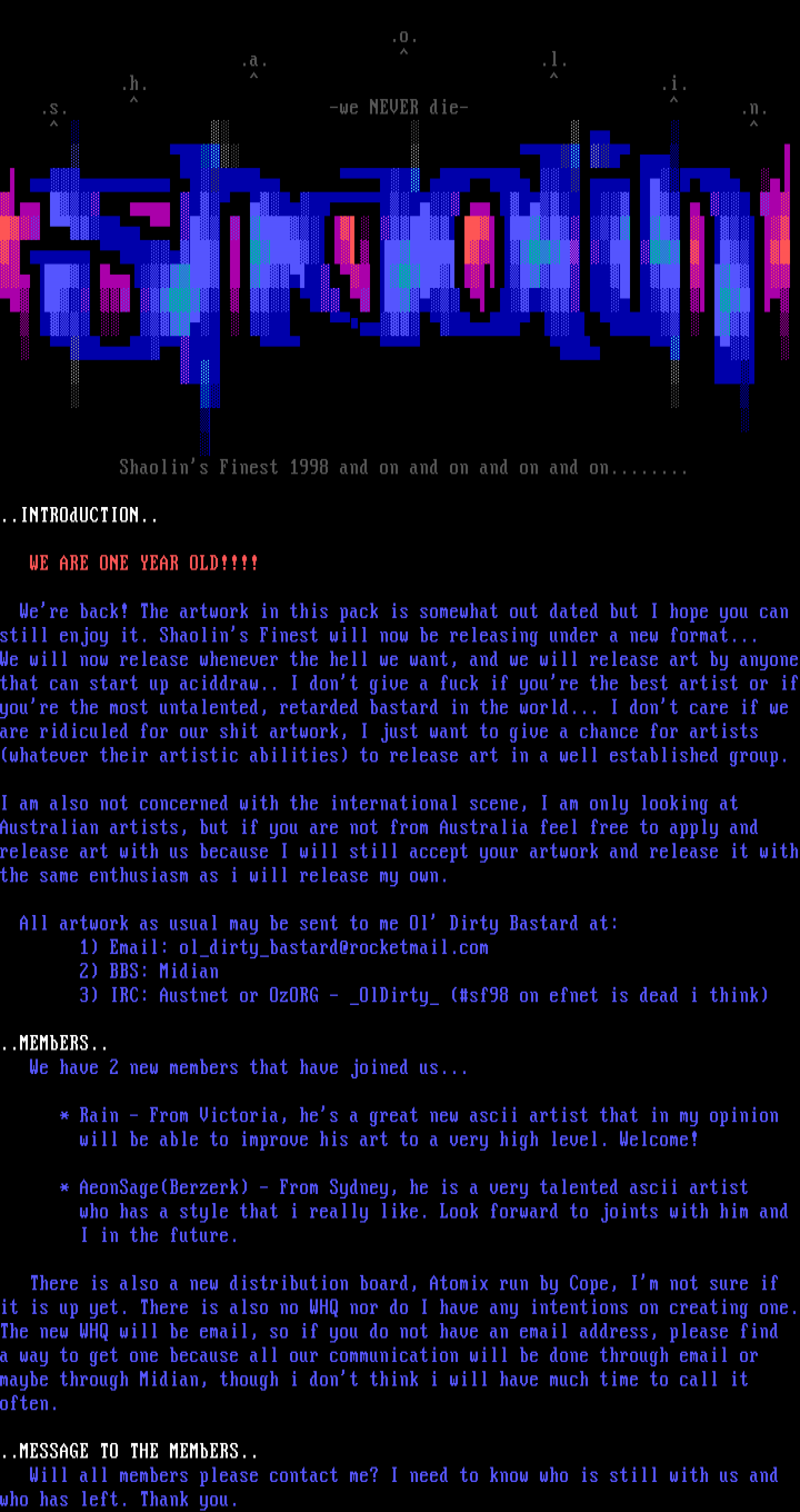 1 Email: oldirtybastard@rocketmail.com