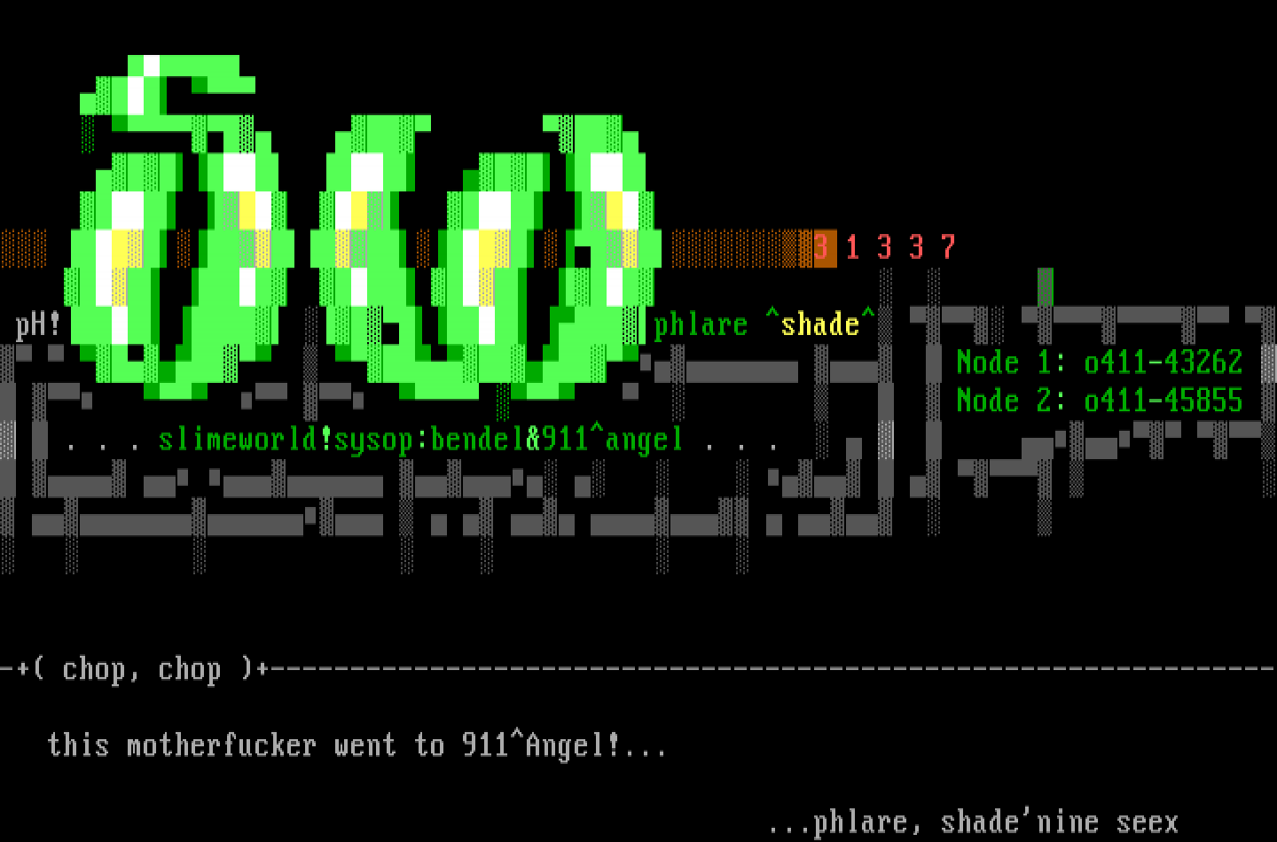 Node 2: o411-45855 . . . slimeworld!sysop:bendel911angel . . .