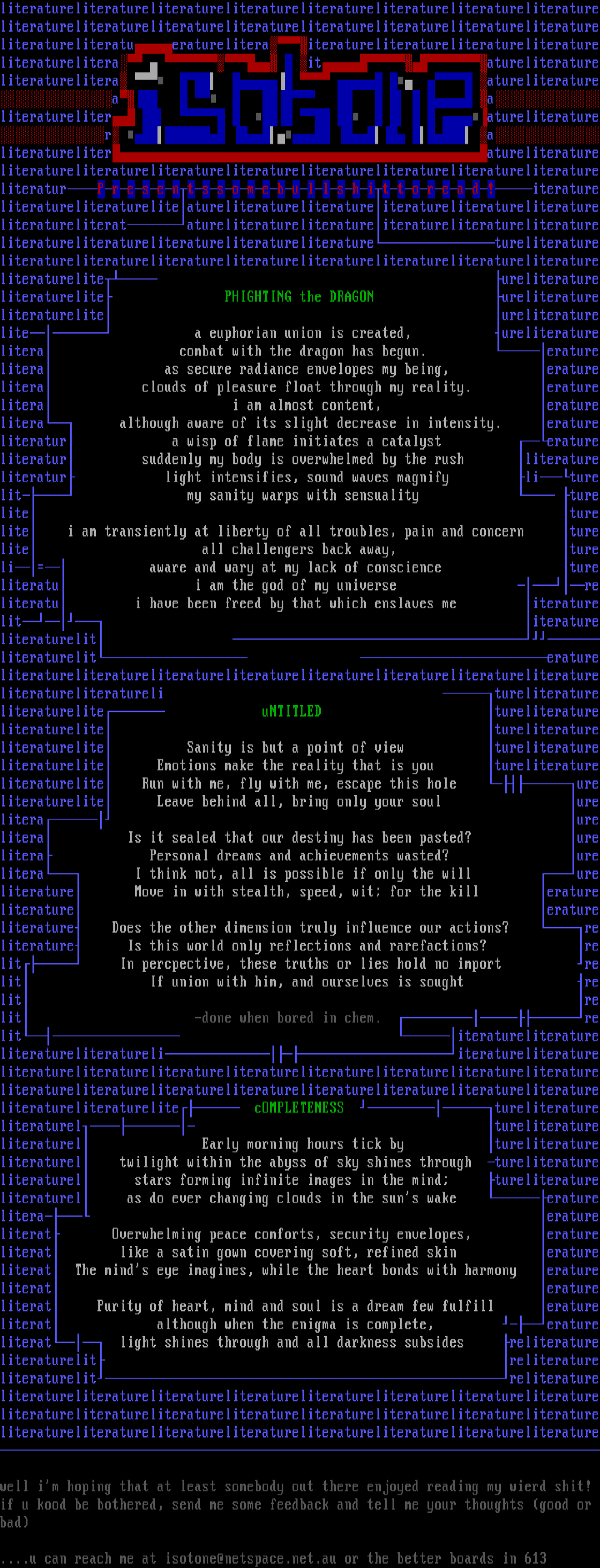 ....u can reach me at isotone@netspace.net.au or the better boards in 613