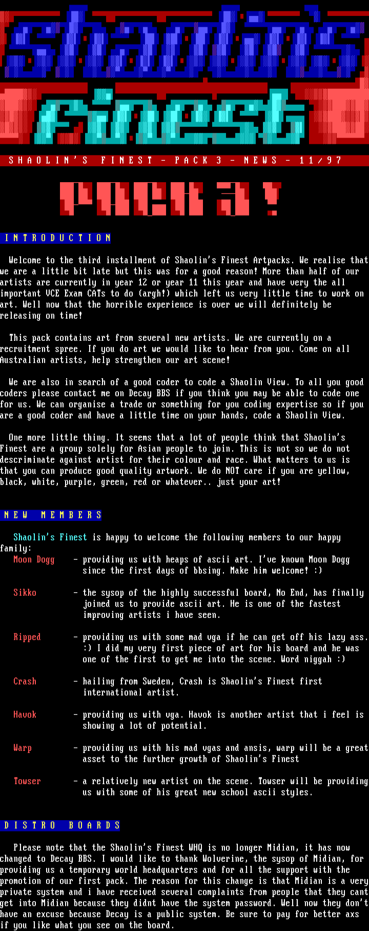 Welcome to the third installment of Shaolins Finest Artpacks. We realise thatwe are