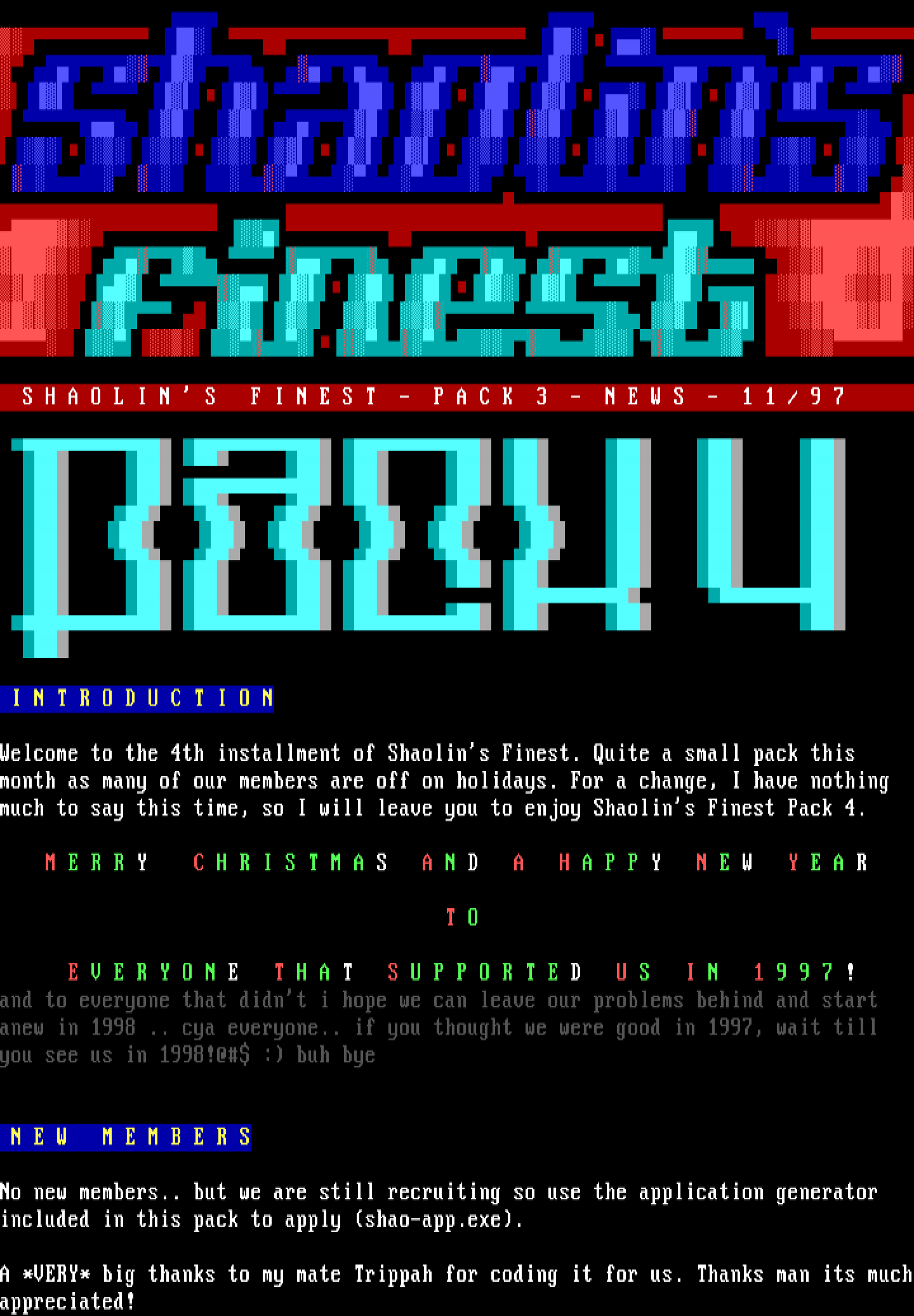 S H A O L I N S F I N E S T - P A C K 3 - N E W S - 1 1 / 9 7