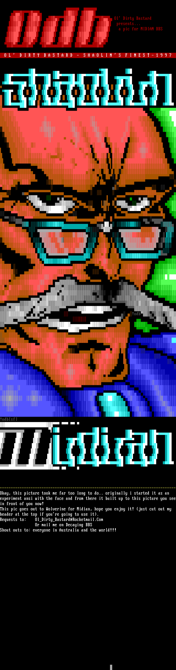 Requests to: OlDirtyBastard@Rocketmail.Com