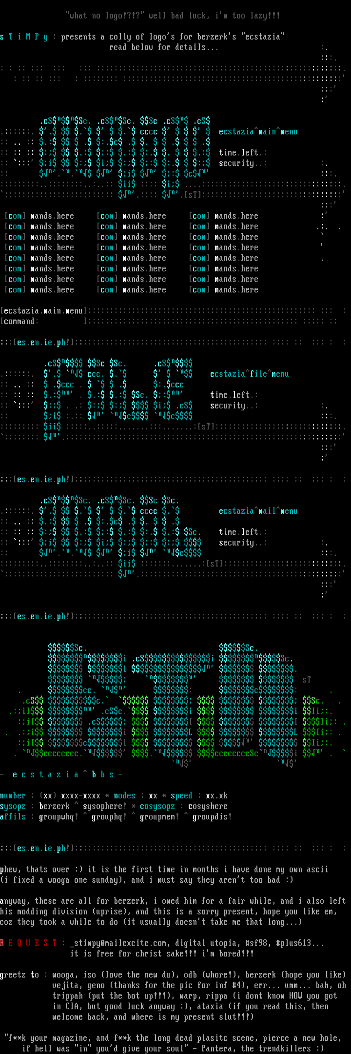 s T i M P y : presents a colly of logos for berzerks ecstazia