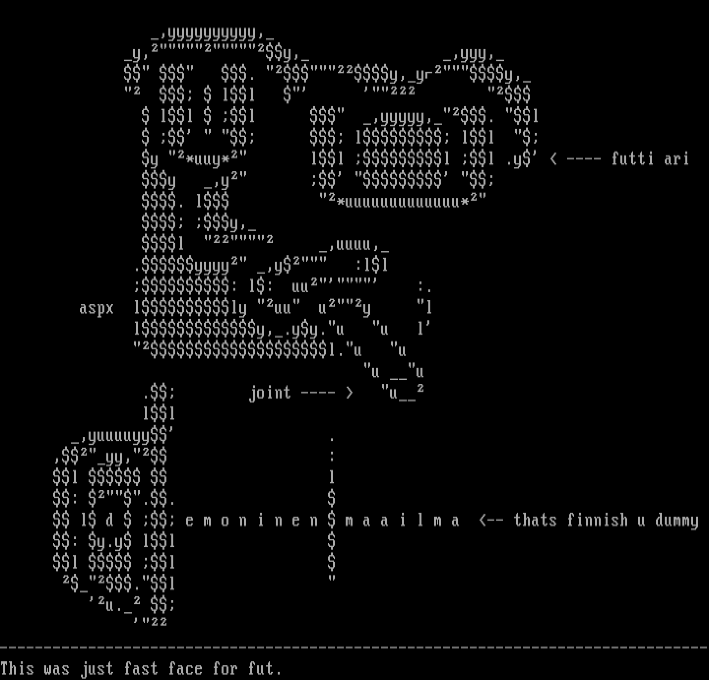 l d e m o n i n e n m a a i l m a -- thats finnish u dummy