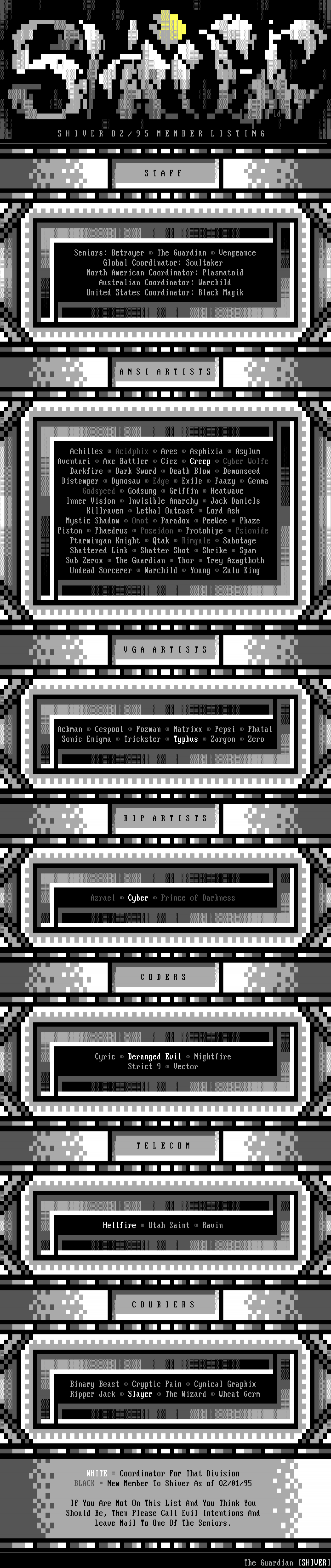 ld S H I V E R O 2 / 9 5 M E M B E R L I S T I N G