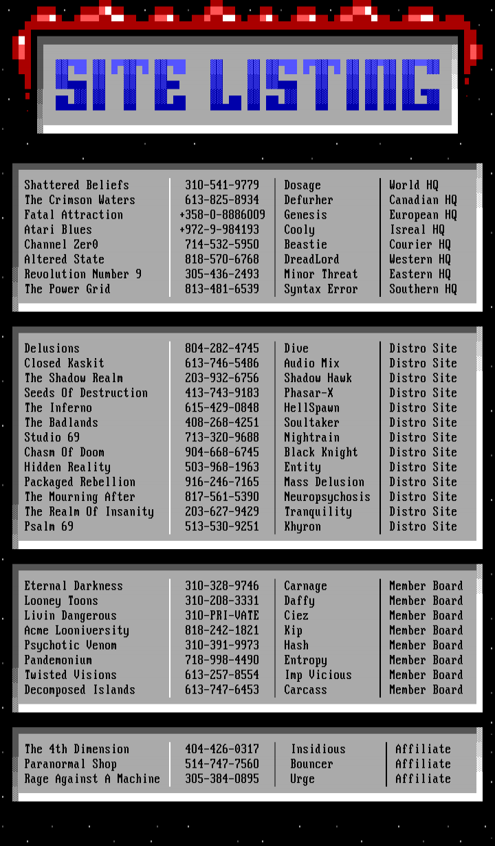 Psychotic Venom 31O-391-9973 Hash Member Board .. Pandemonium 718-998-449O Entropy Member Board