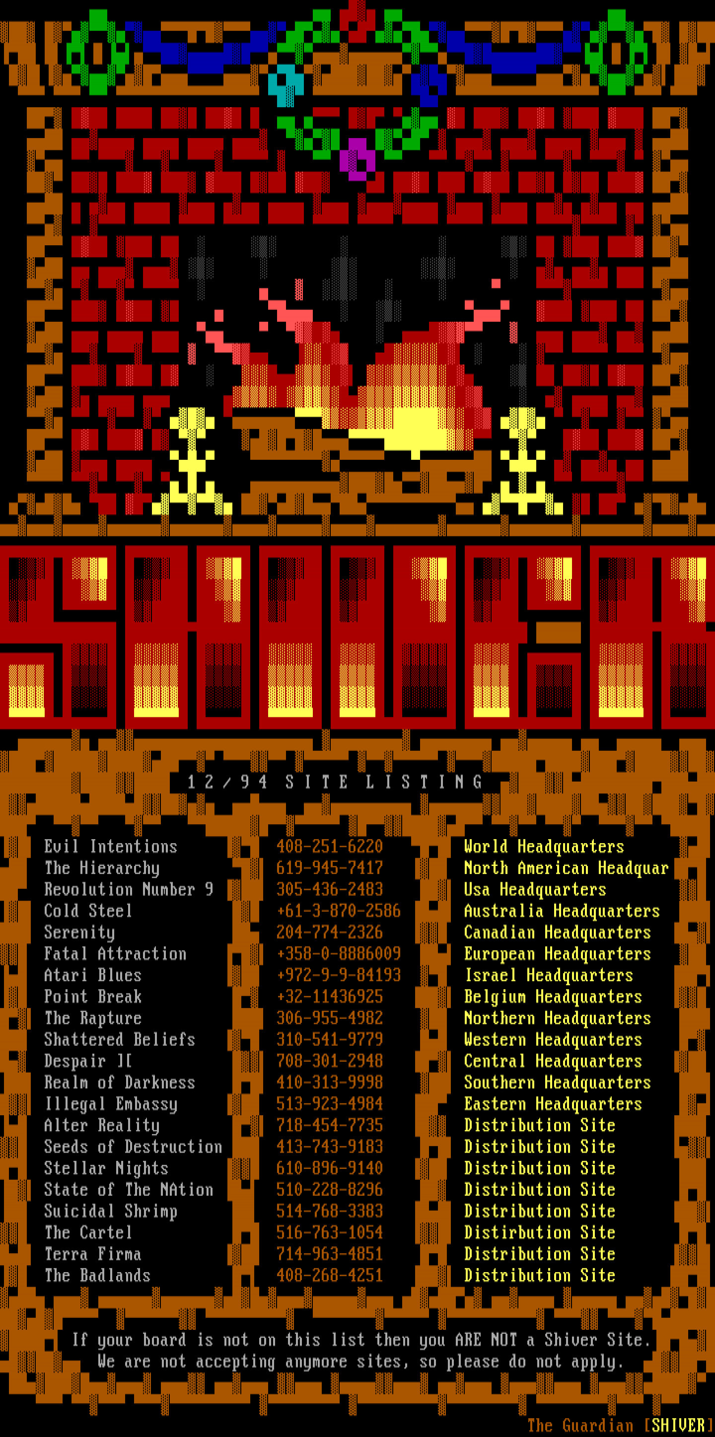 1 2 / 9 4 S I T E L I S T I N G Evil Intentions 408-251-6220 World Headquarters The Hierarchy 619-945-7417 North American Headquar
