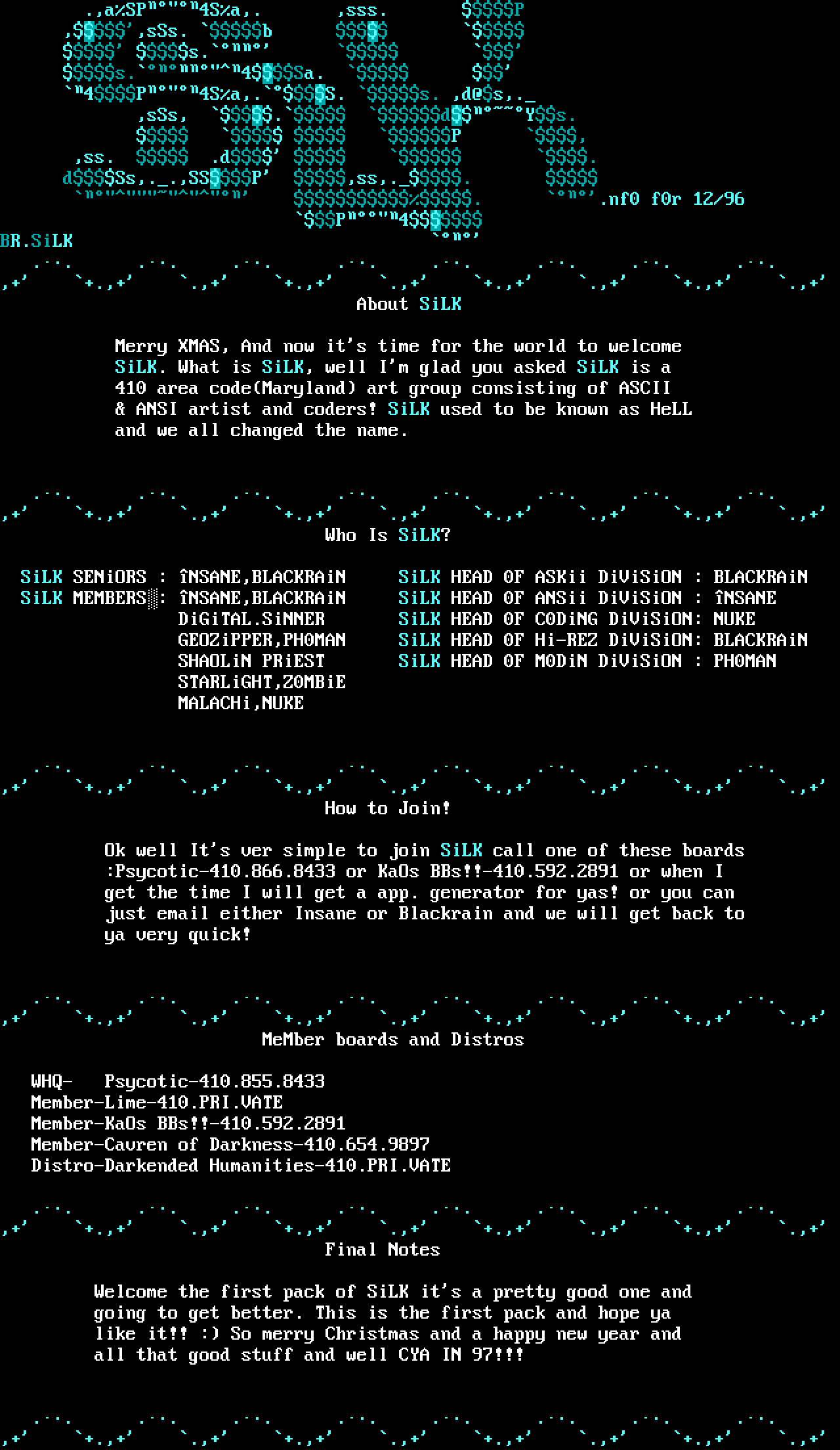 ANSI artist and coders! SiLK used to be known as HeLL