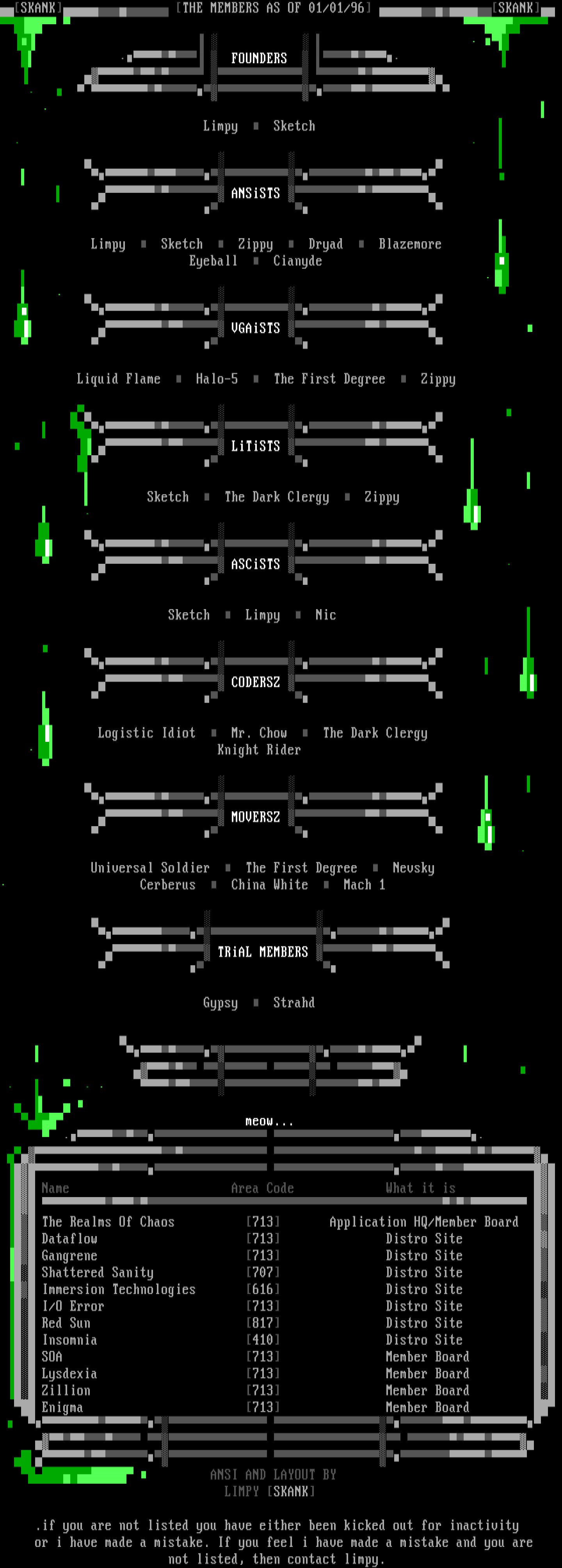 SKANK THE MEMBERS AS OF 01/01/96 SKANK