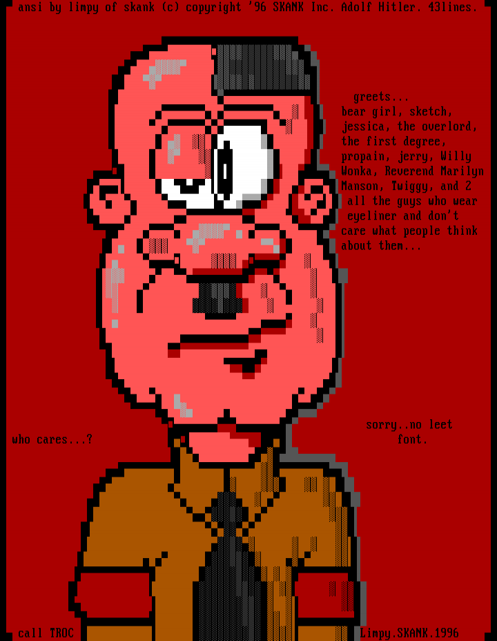 ansi by limpy of skank c copyright 96SKANK Inc. Adolf Hitler. 43lines.