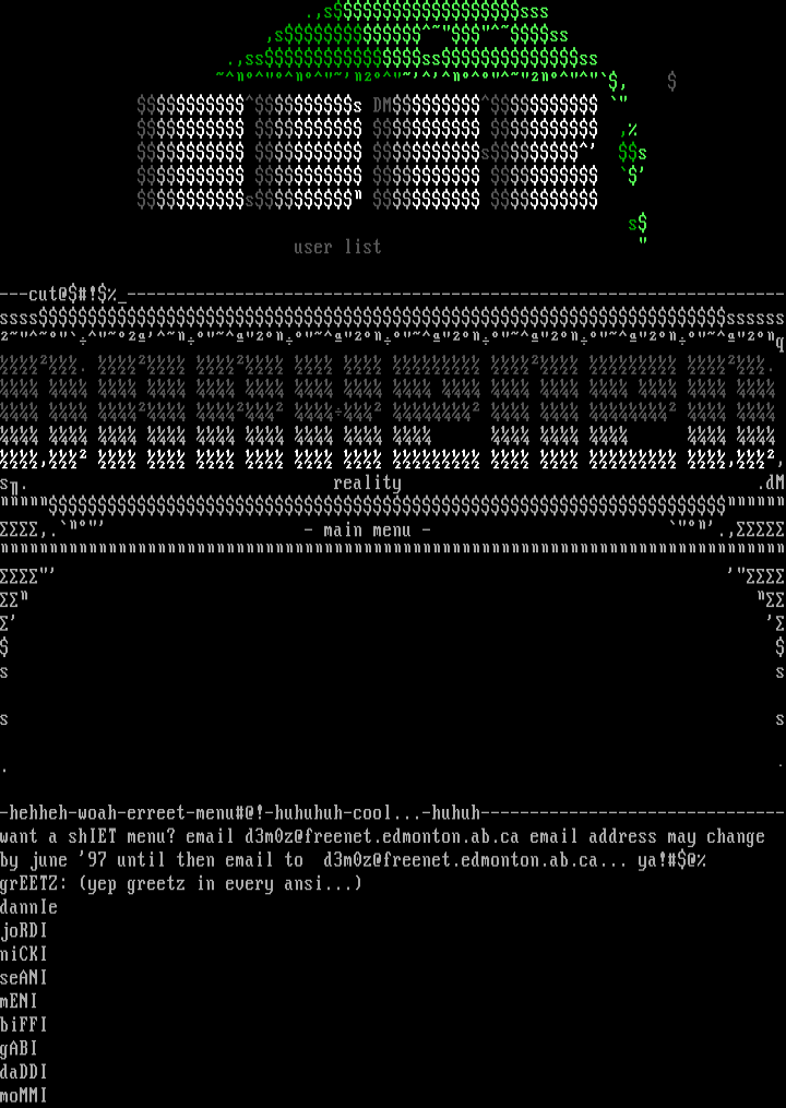 -hehheh-woah-erreet-menu@!-huhuhuh-cool...-huhuh-------------------------------want a shIET menu? email d3m0z@freenet.edmonton.ab.ca email address may change by june 97 until then email to d3m0z@freenet.edmonton.ab.ca... ya!@