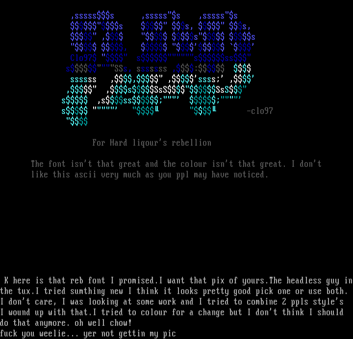 K here is that reb font I promised.I want that pix of yours.The headless guy inthe tux.I tried sumthing new I think it looks pretty good pick one or use both.