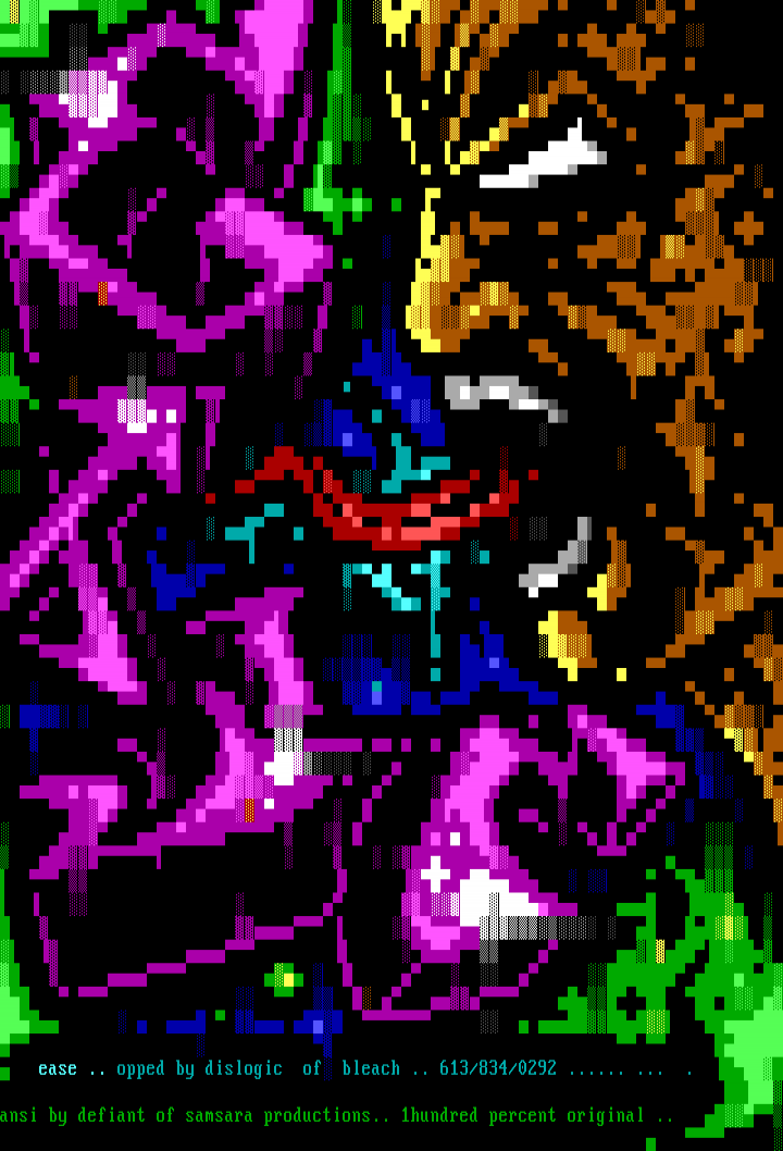 ease .. opped by dislogic of bleach .. 613/834/0292 ...... ... . ansi by defiant of samsara productions.. 1hundred percent original ..