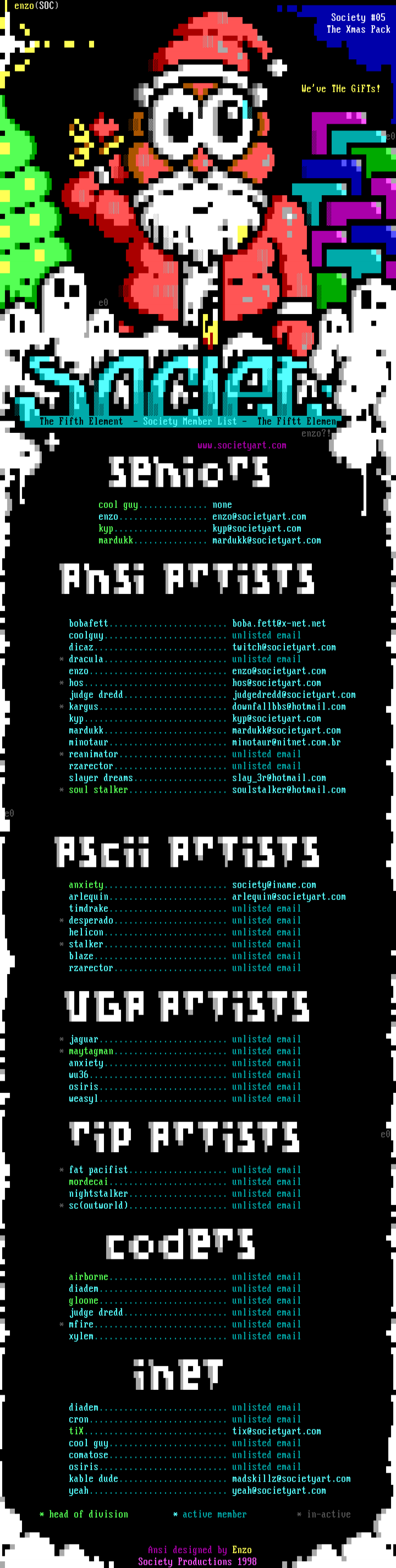 e0 The Fifth Element - Society Member List - The Fiftt Elemen enzo?! www.societyart.com cool guy.............. none enzo.................. enzo@societyart.com kyp................... kyp@societyart.com mardukk............... mardukk@societyart.com
