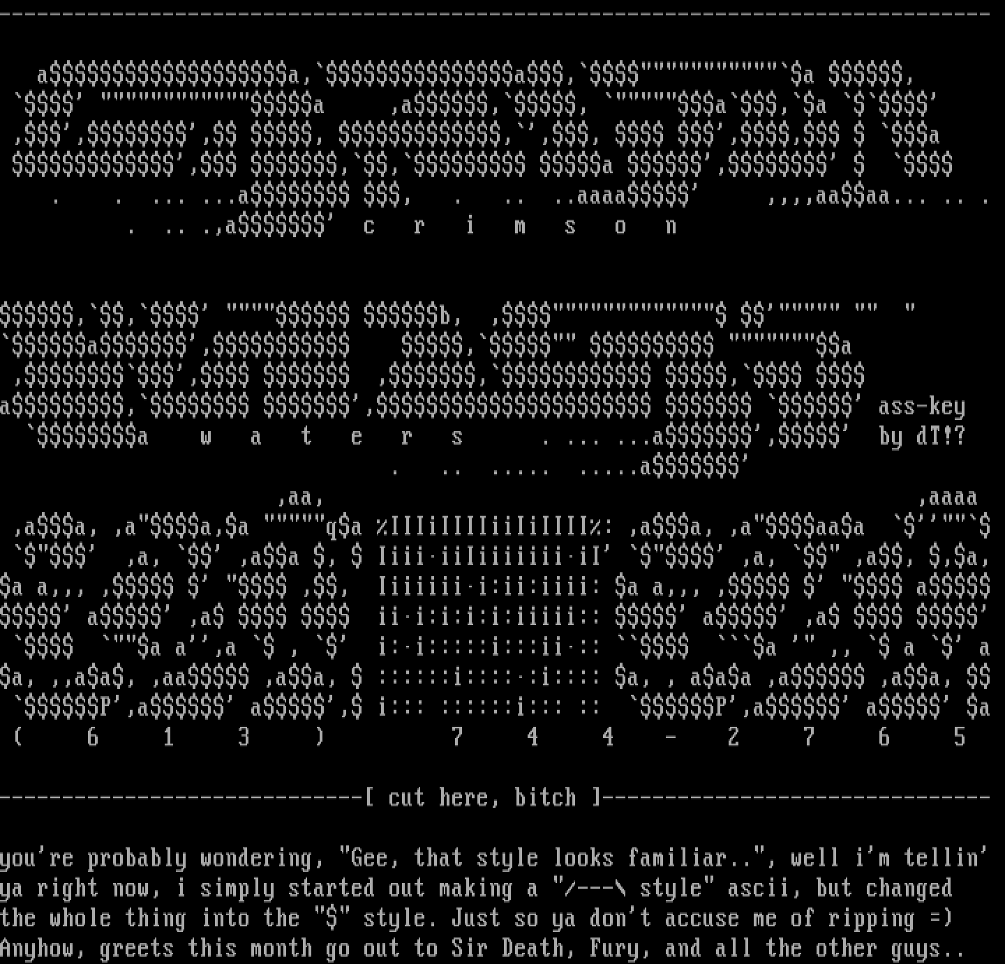 Anyhow, greets this month go out to Sir Death, Fury, and all the other guys..