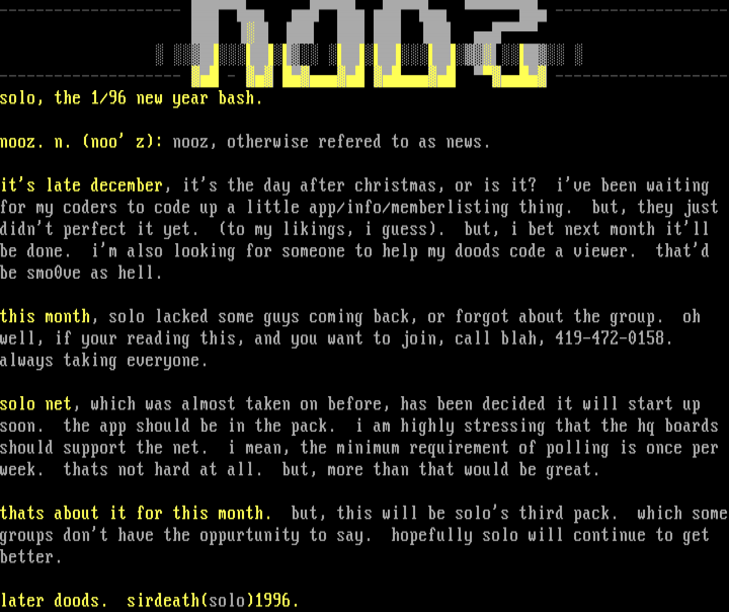 -------------------- - -------------------solo, the 1/96 new year bash.