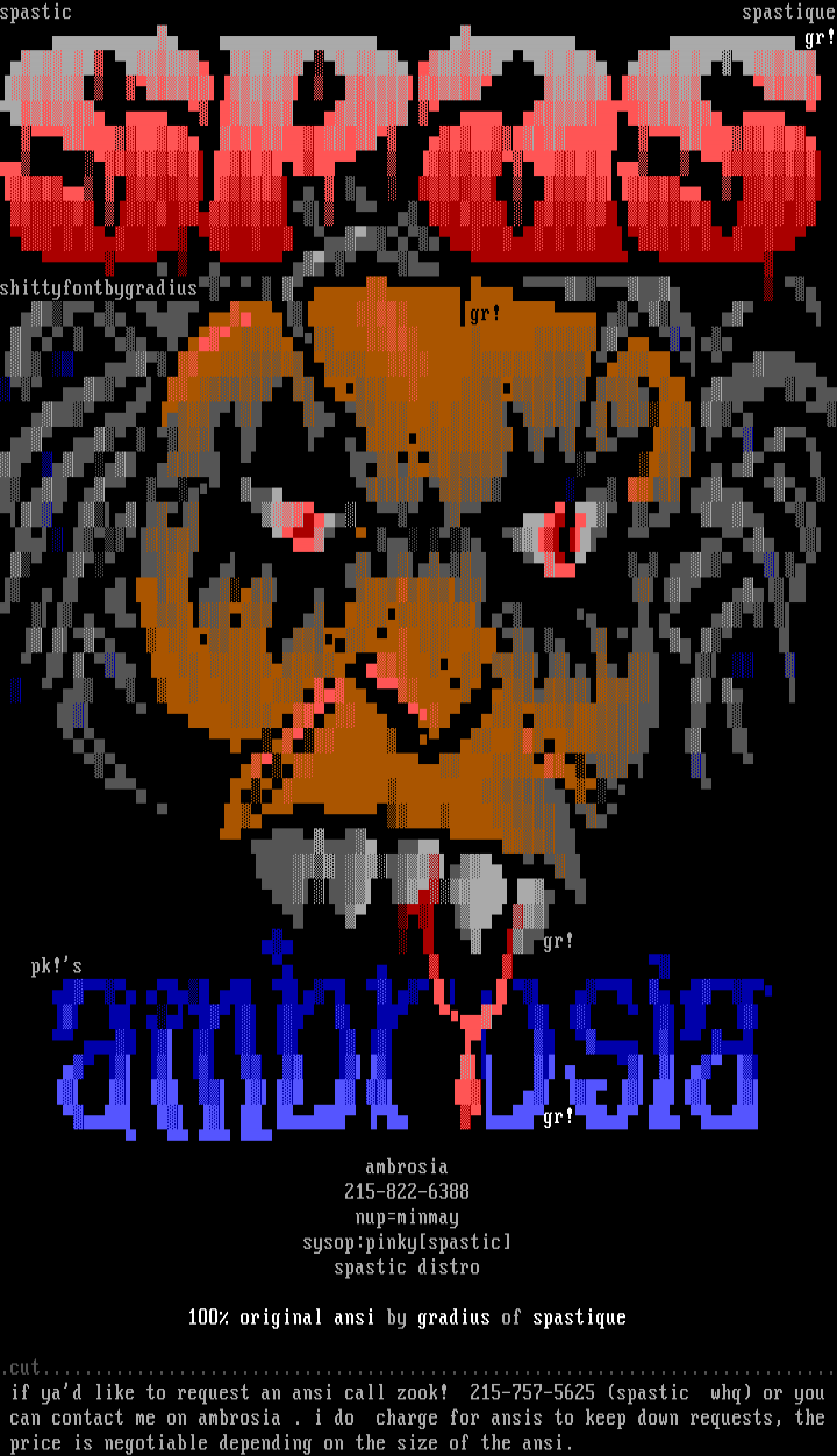 .cut............................................................................ if yad like to request an ansi call zook! 215-757-5625 spastic whq or you