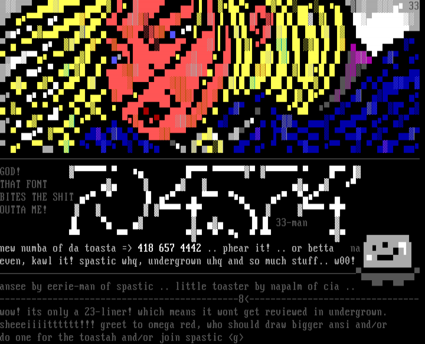 sheeeiiiitttttt!!! greet to omega red, who should draw bigger ansi