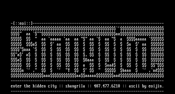 enter the hidden city :: shangrila :: 407.477.6210 :: ascii by eoijin.