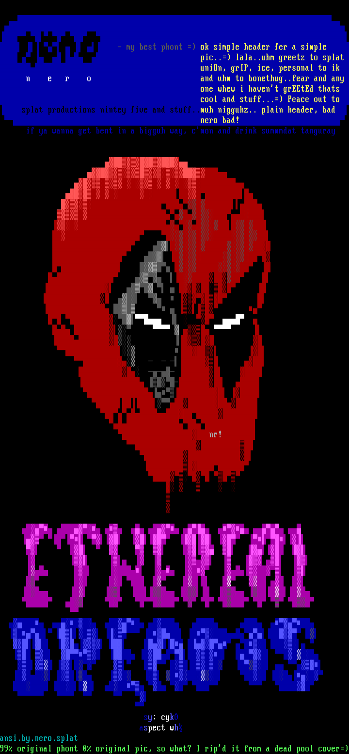 splat productions nintey five and stuff..muh nigguhz.. plain header, bad nero bad! if ya wanna get bent in a bigguh way, cmon and drink summmdat tanguray